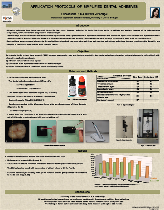 Conclusões: Quando se usar os sistemas adesivos Easy Bond e Scotchbond 1XT, é recomendável aplicar três camadas de adesivo, uma vez que aumenta os valores de resistência adesiva, sem consumo de muito tempo para o procedimento.